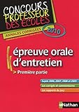 Le Titre Du Livre : "épreuve orale d'entretien ; première partie ; concours professeur des écoles (édition 2010)"